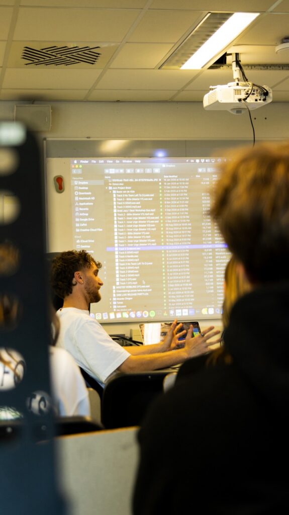 Daarna namen Gus en Henning van Beatwise het stokje over met een inspirerende Sampling Jazz-workshop. Samen met de scholieren transformeerden ze live gespeelde fragmenten uit het concert tot frisse, strak kloppende hiphopbeats. Niet alleen digitale opnames kwamen voorbij: de leerlingen werden ook uitgedaagd om hun eigen sound toe te voegen, met hun stem, hun instrument en vooral een flinke dosis creativiteit.